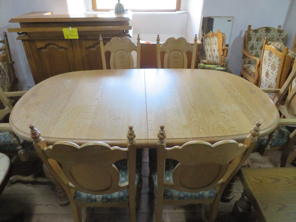 Holandský nábytek » Stoly » Stůl + 6 židlí Stůl + 6 židlí Katalogové číslo: N4642 Vyrobeno: Německo Typ: Použité zboží Akce: Rozměry: 180*105*v.78 Cena: 21900 Kč